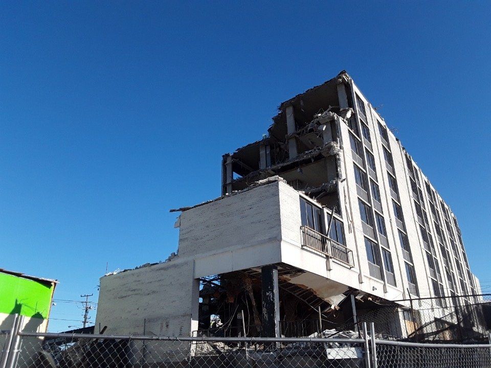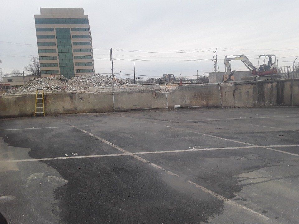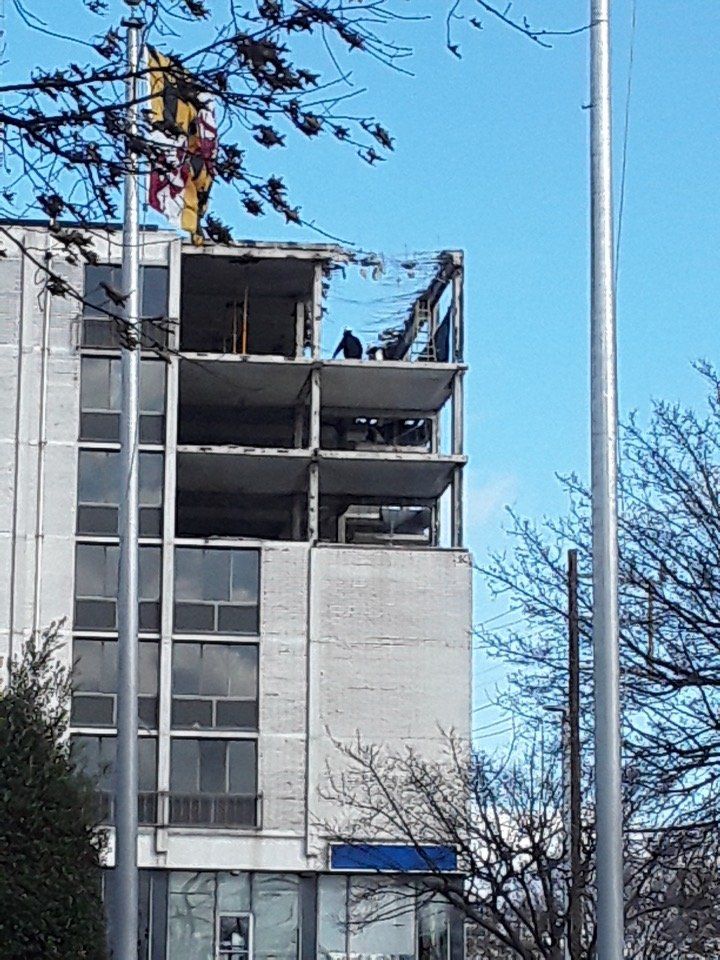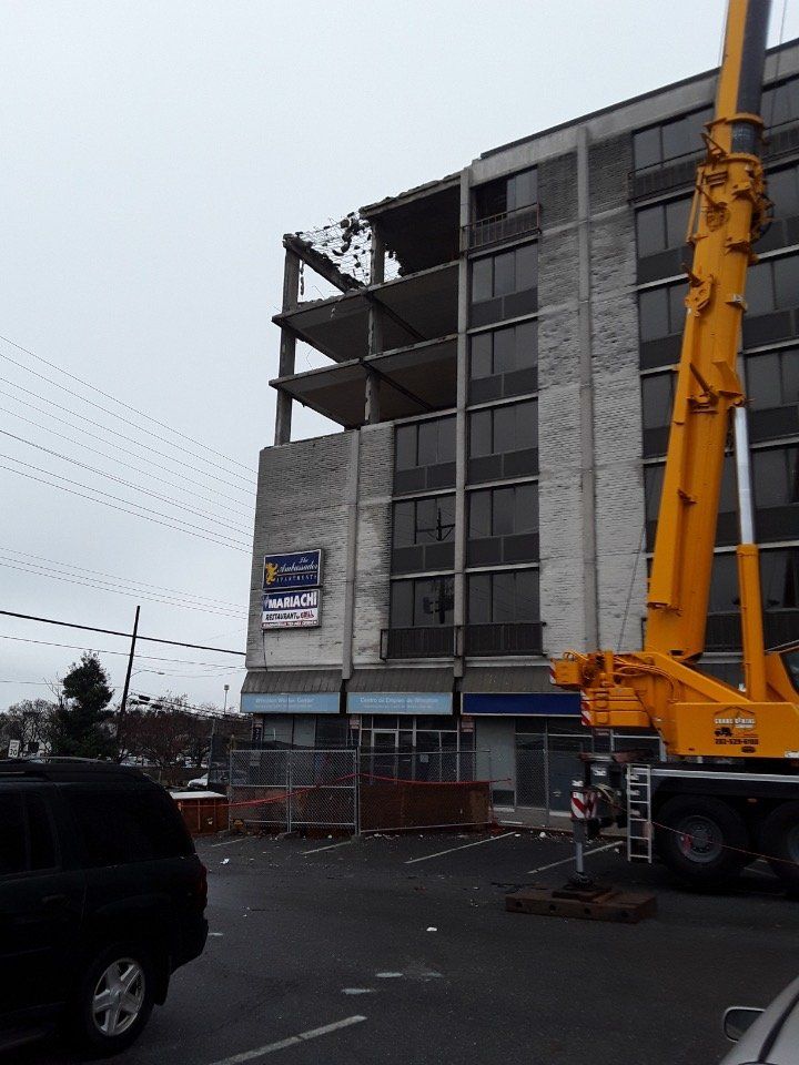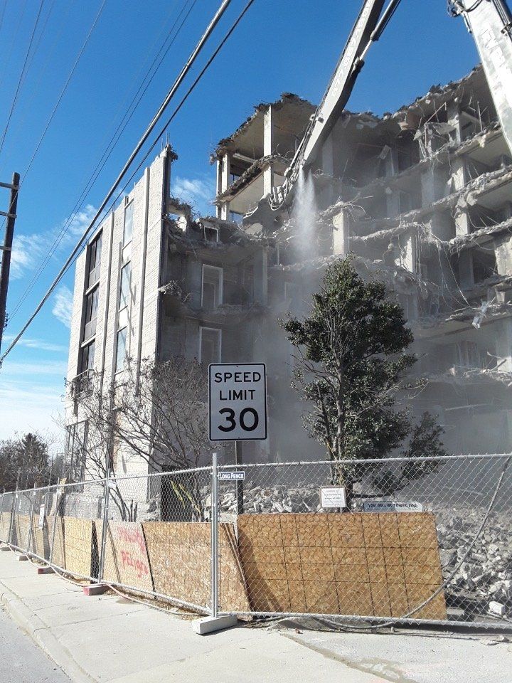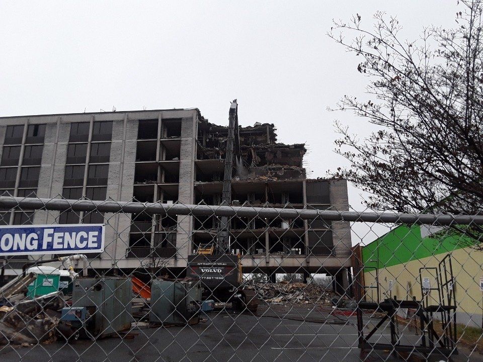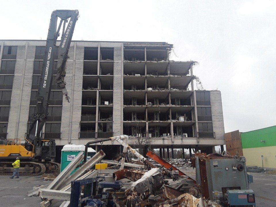 Demolition, asbestos abatement, site restoration of a 7-story building in Wheaton, MD.