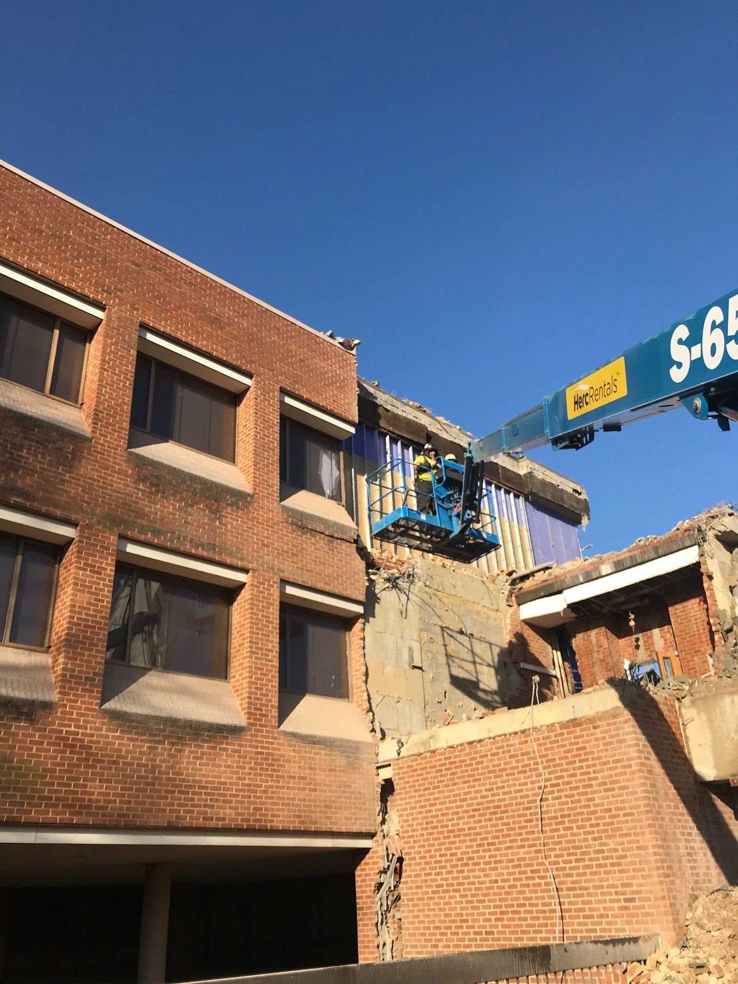 Demolition, asbestos abatement of a 110,000 sf 4 story building on the George Mason University Fairfax Campus. General Contractor: Whiting-Turner Contracting Company